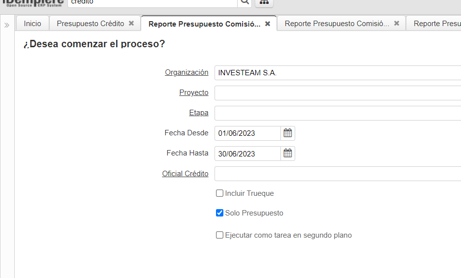 se corrigio quitando solo el check de presupuesto y manteniendo wl where de la condicion pres=N (no el chek pres)