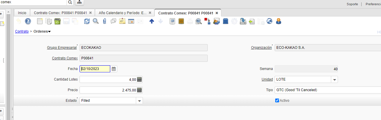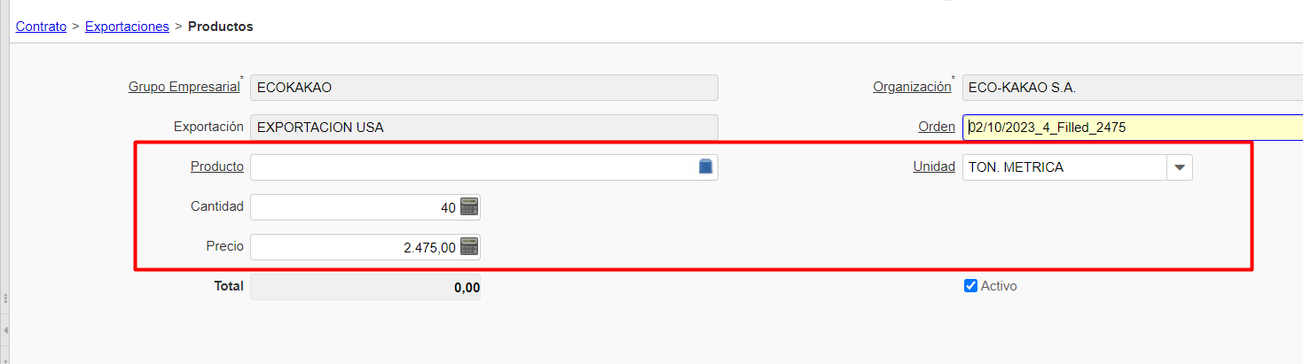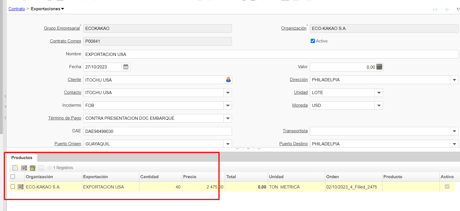 se pide como parametro una exportacion de ese contrato