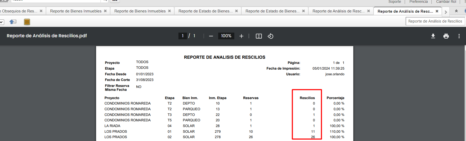 pero mostrando en detalle cada rescilio, cliente, vendedor, fecha