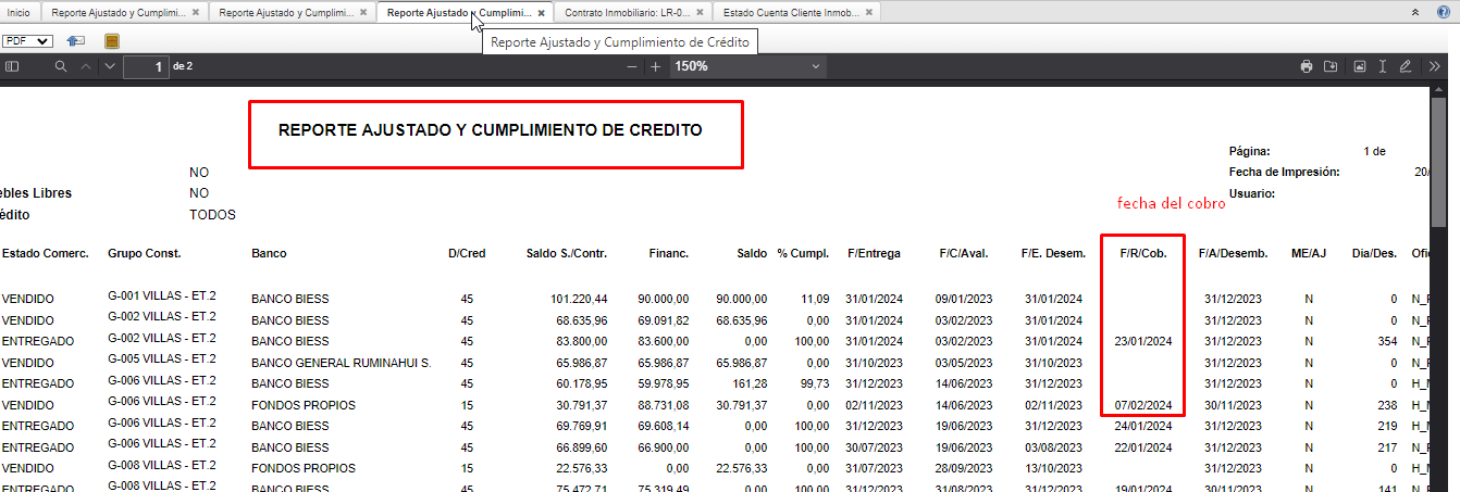 REPORTE AJUSTADO Y CUMPLIMIENTO DE CREDITO