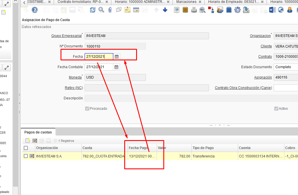 cambiar por la fecha del cobro