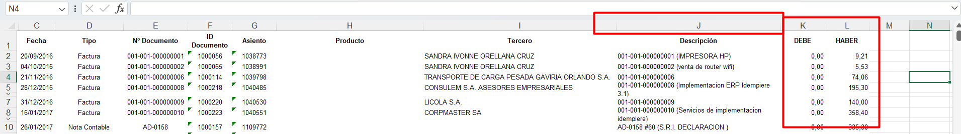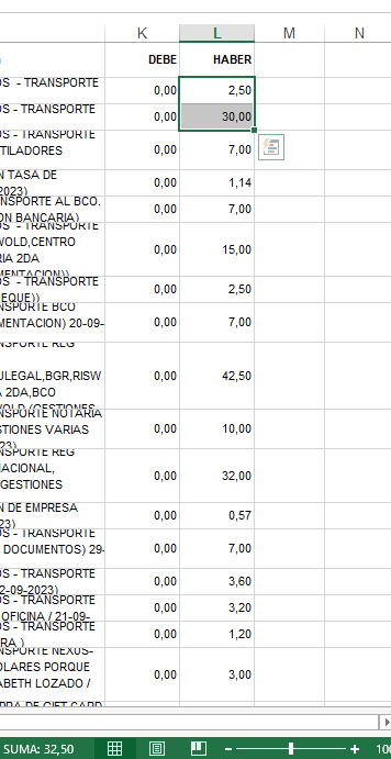 revisar columnas de valores al pasar a excel. Pasan como texto, por el formato