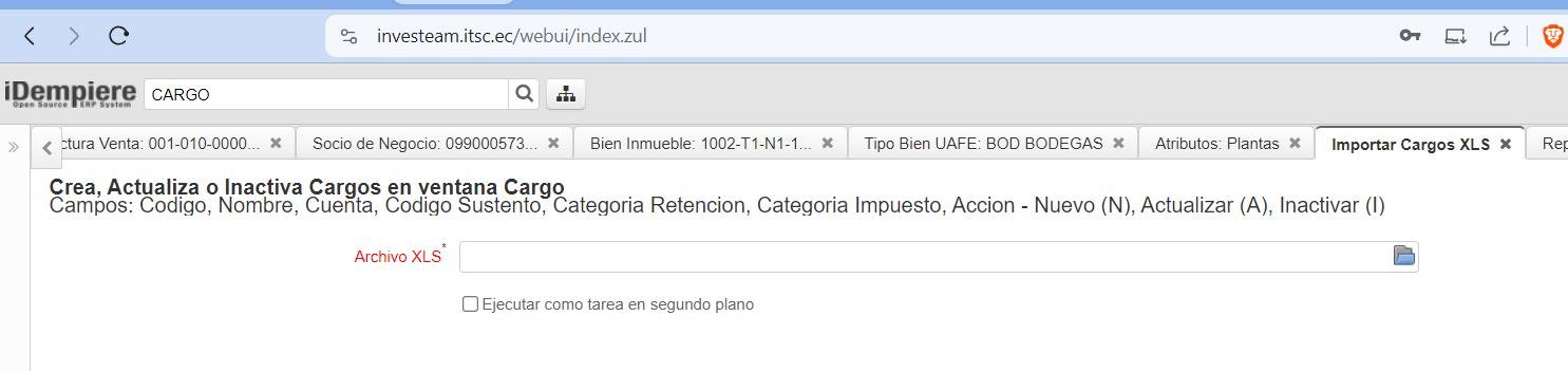 openReporte de cargos para generar plantilla de importar cargos