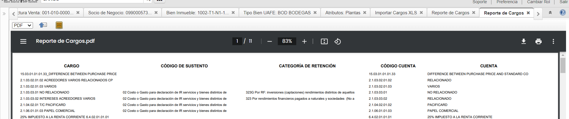tomar como base reporte de cargos