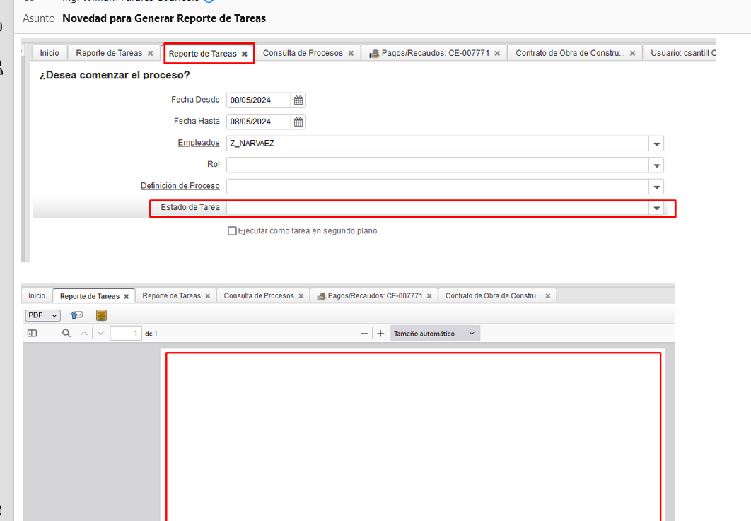 openreporte de tareas, ver filtro