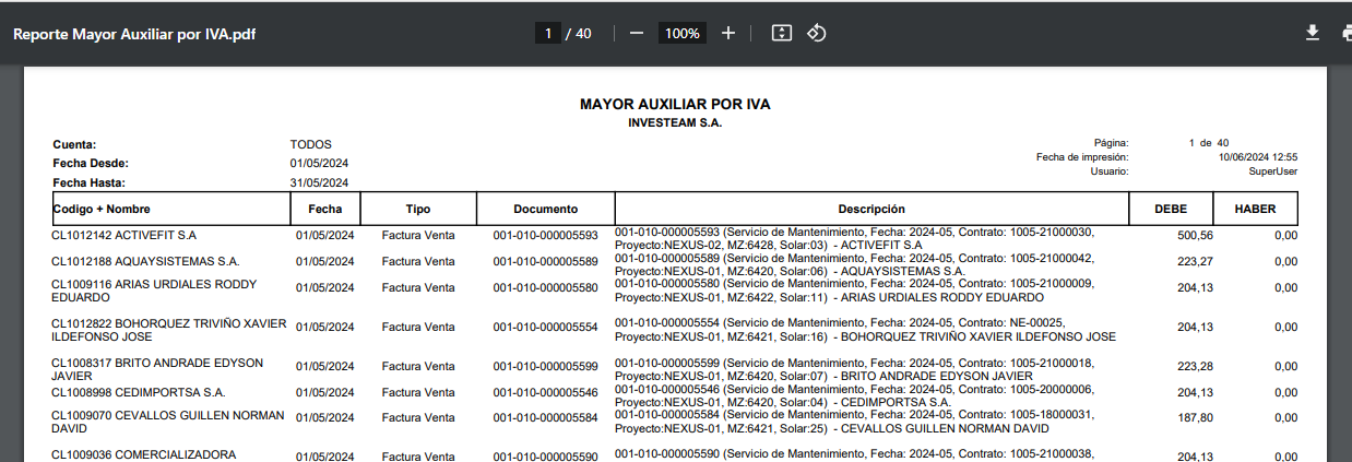 no sumariza por cuenta, sale todo lo qeu esta en fac act
