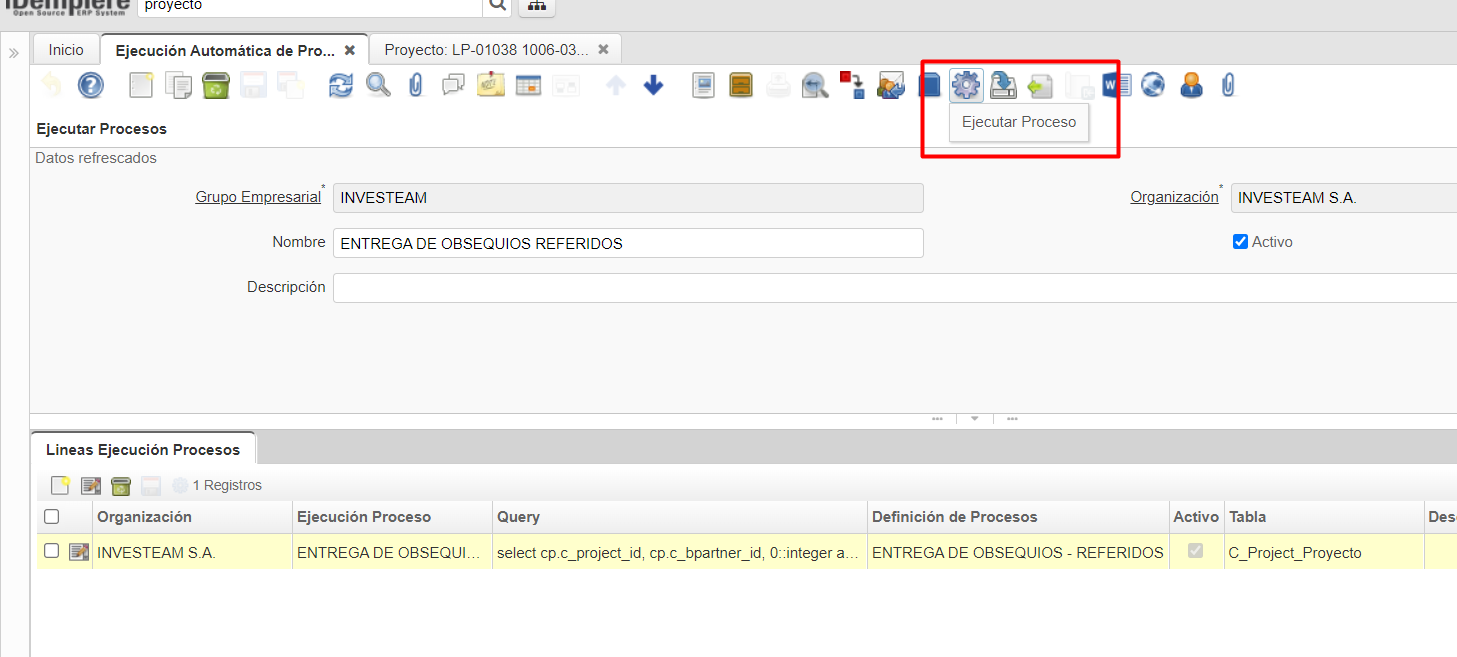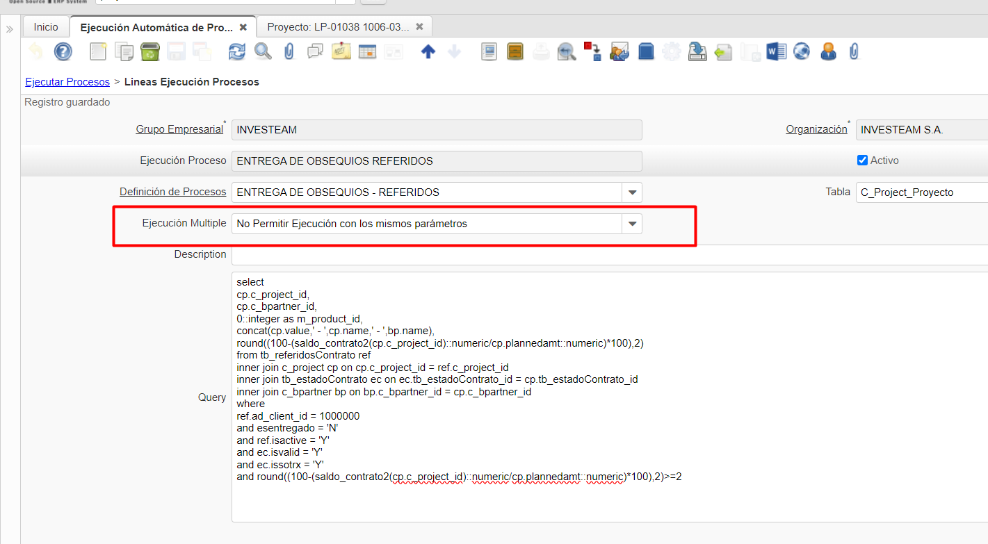 openproceso de ejecutar procesos, debe revisar parametro de controlar duplicados