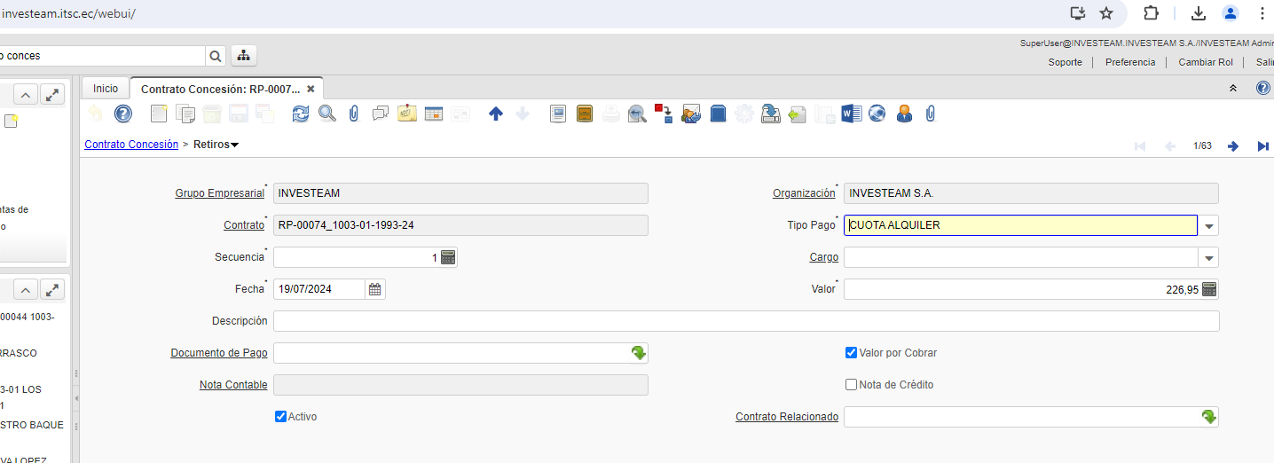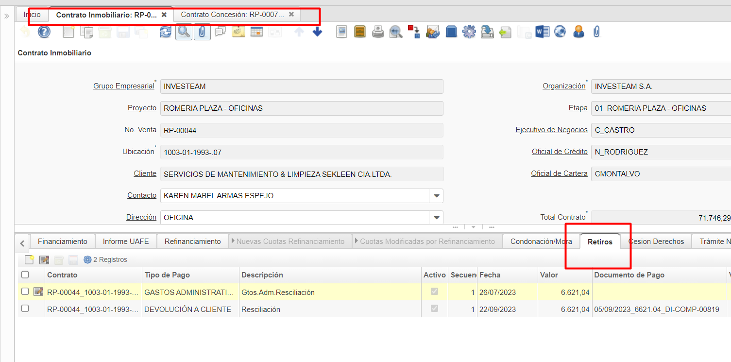 opencopiar pestaña retiro de contrato inmobiliario a contrato concecion