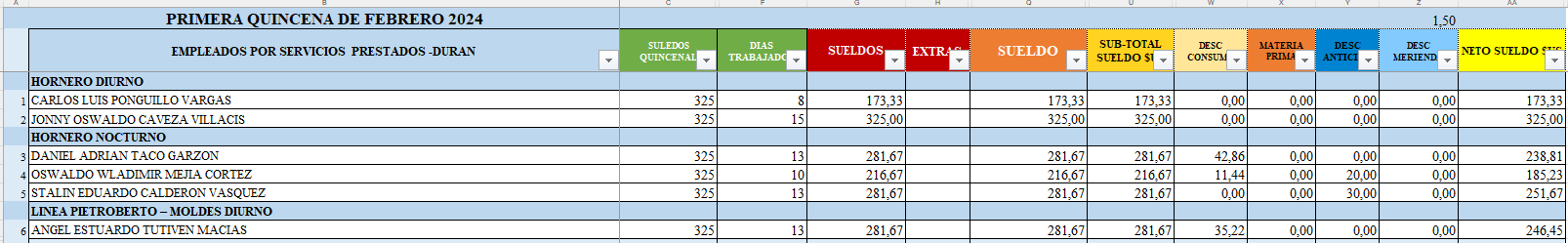 española: Reporte Nómina Segunda Quincena Por Dia