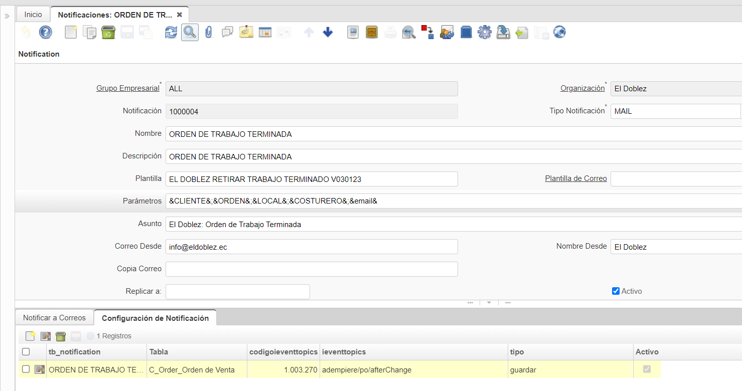 openrevisar si se envia la notificacion por evento