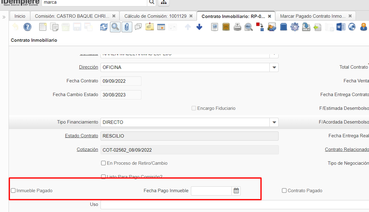 openmarcar pagado cont inm, poner nueva fecha de pago inmueble