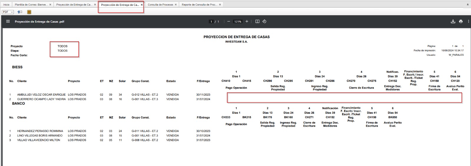 openproyeccion de entrega de casas, no muestra las tareas