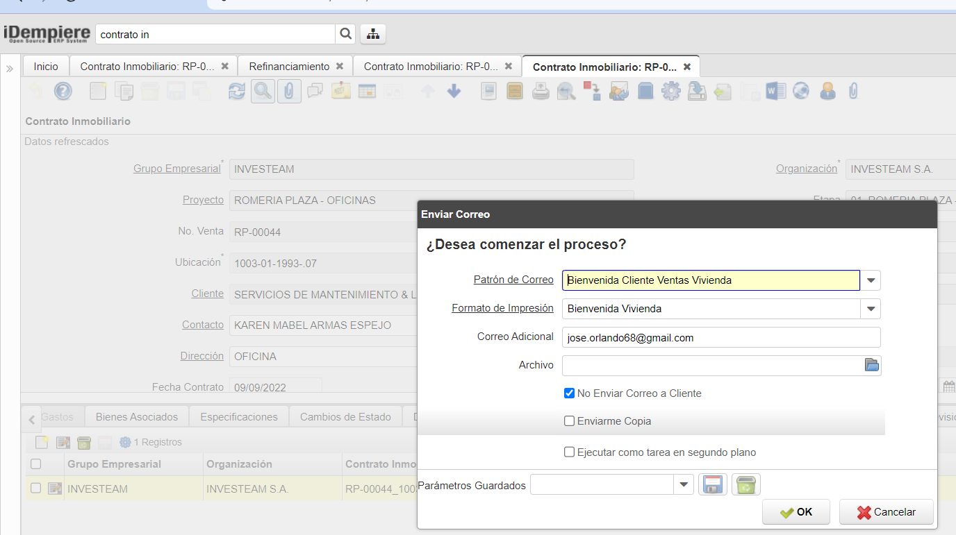 openver forma de mejorar el proceso de envio de correo desde contrato inm
