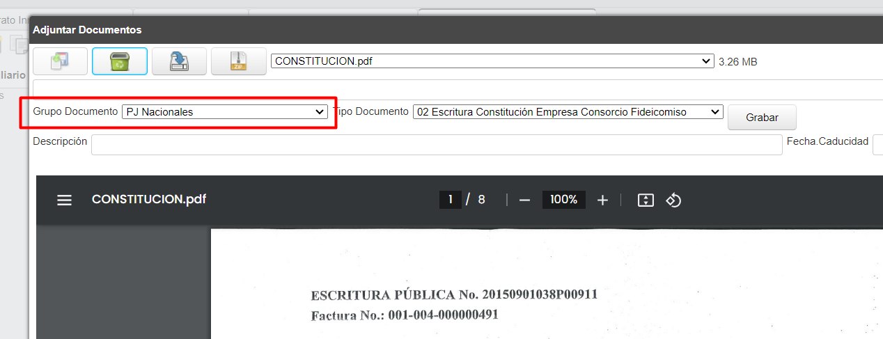 para poder enviar los doc adjuntos del contrato, basados en un parametro de tipo documento