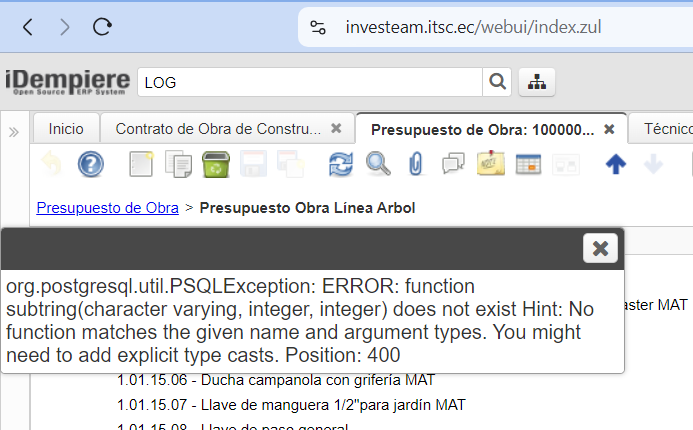 22:02:23.105===========> CopiarPresupuestoObraOPUS.process: org.postgresql.util.PSQLException: ERROR: function subtring(character varying, integer, integer) does not exist