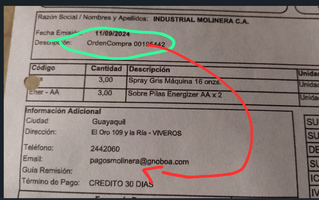 pasar la orden de compra a info adicional