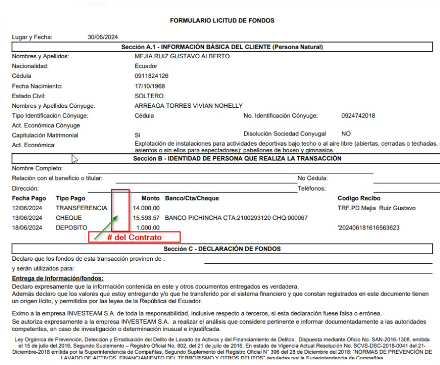 se actualiza al documento del pago, ya no del contrato