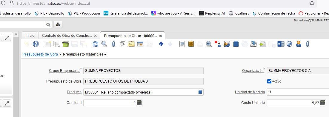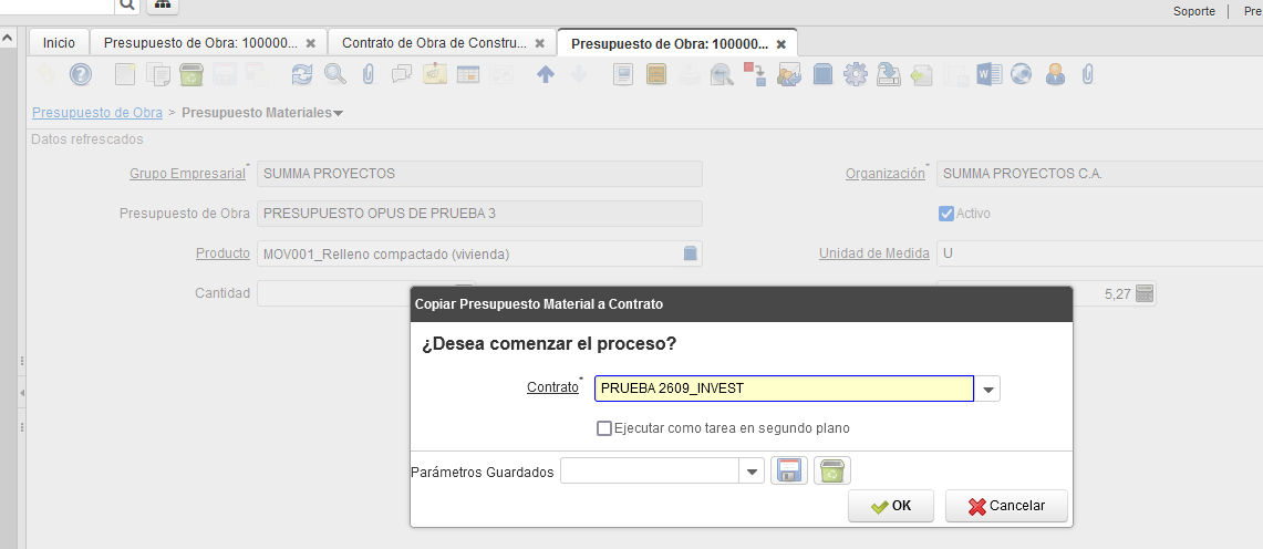 openPresupuesto de Materiales /Crear presupuesto de Obra OPUS (Proceso)