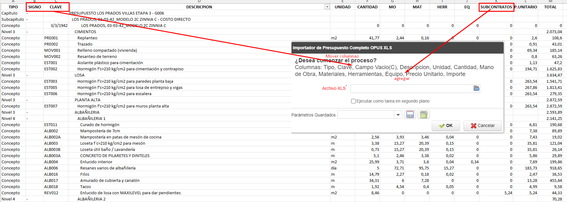 Proceso: Importador de Presupuesto completo OPUS XLS