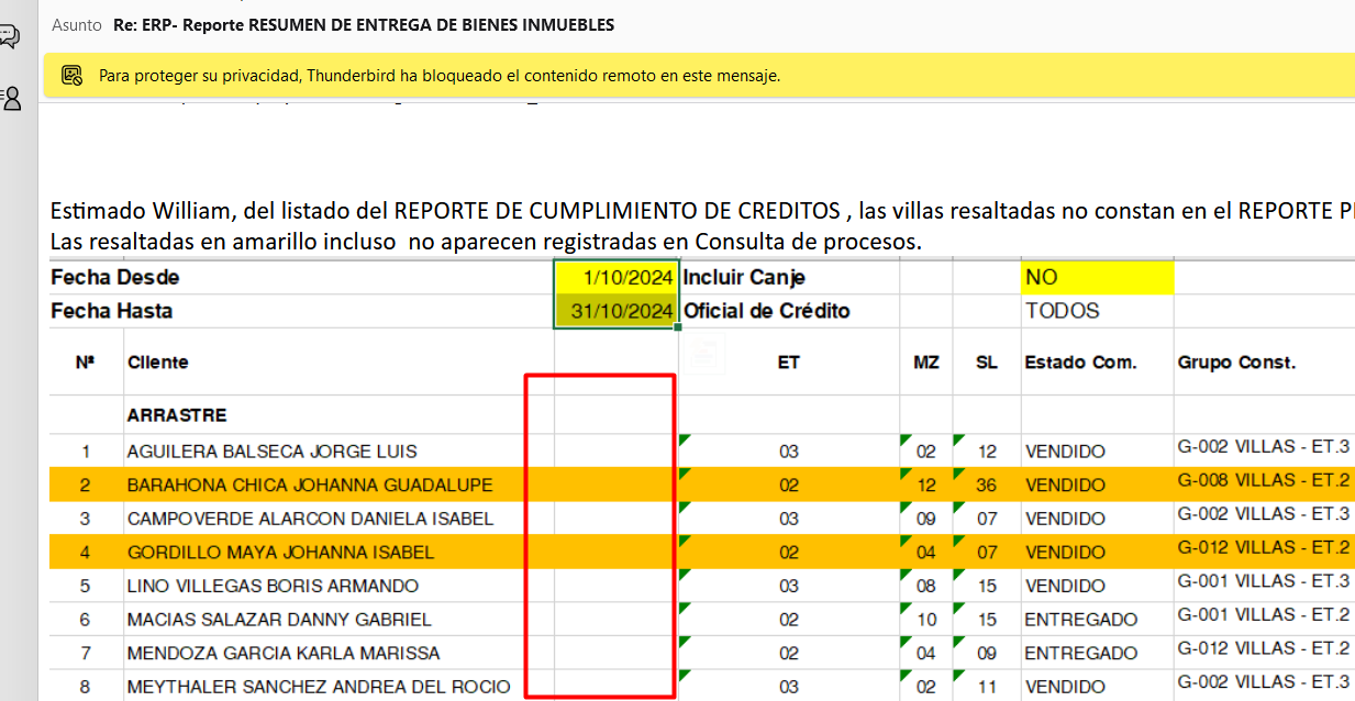 openreporte proyeccion de entregas, se pierde proyecto al exportar