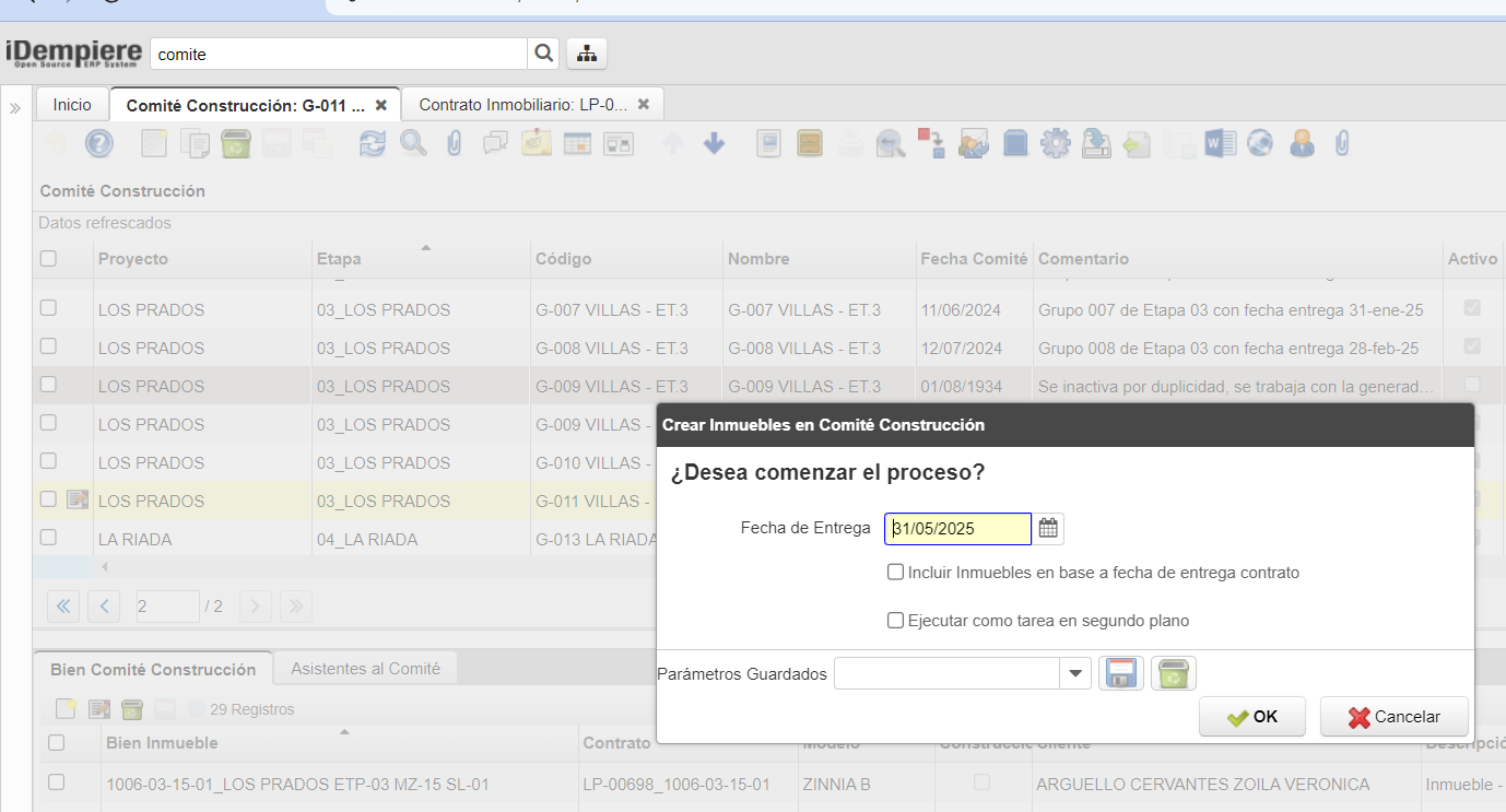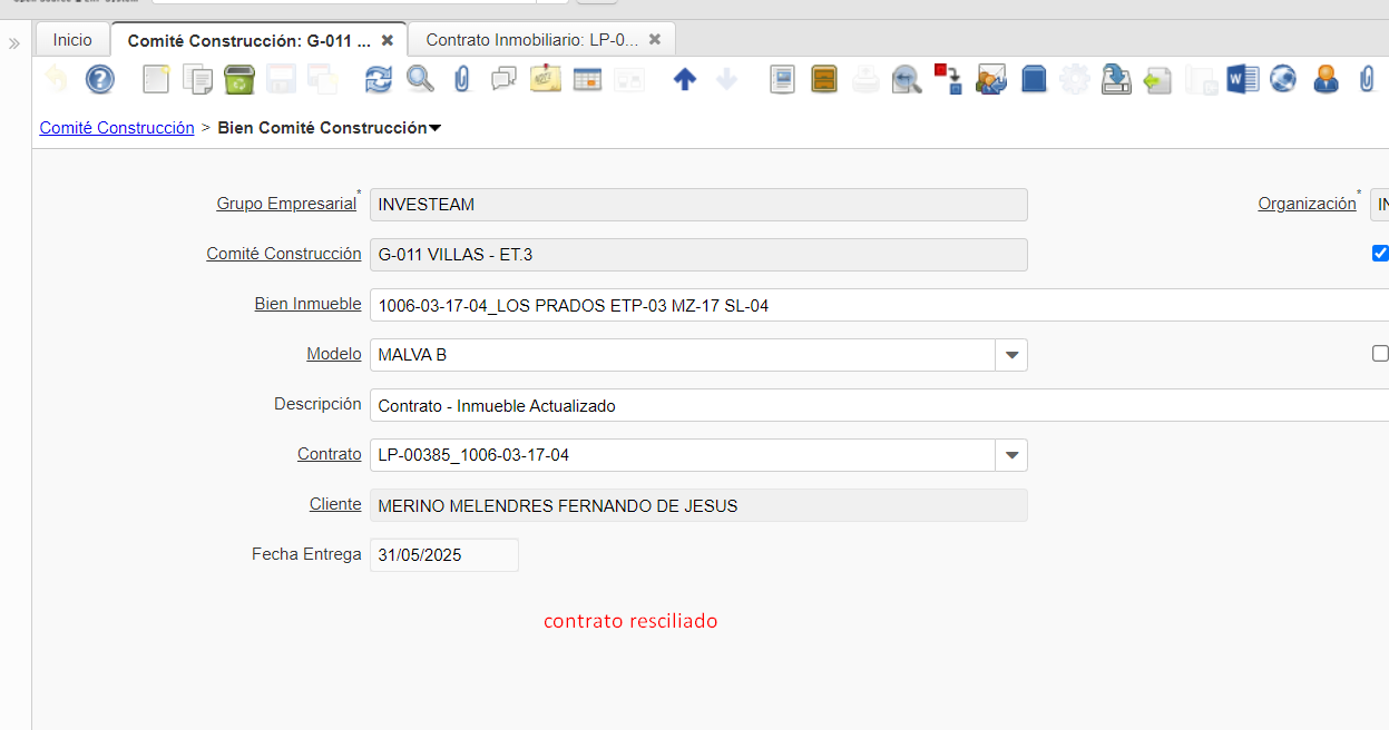 se prioriza al fecha de entrega del contrato, siempre y cuando sea mayor a la fecha del inmueble