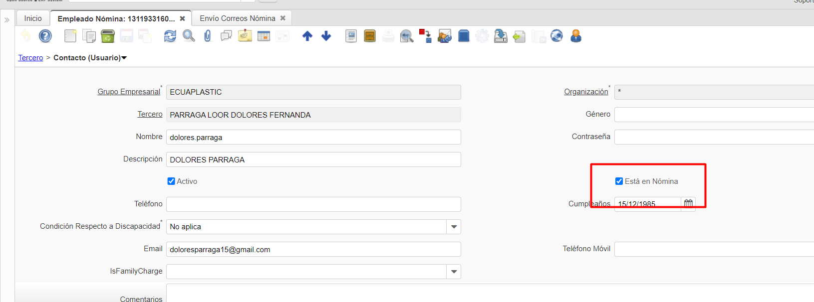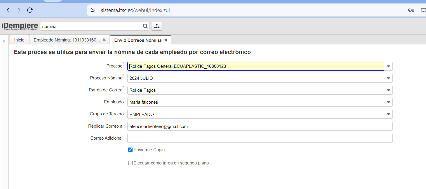 debe enviar al que esta marcado como nomina