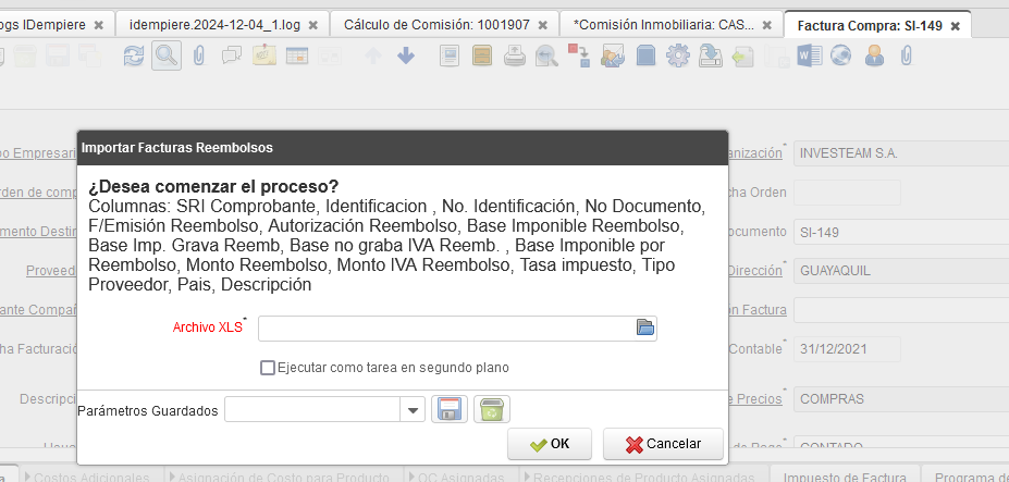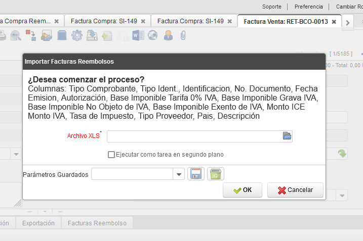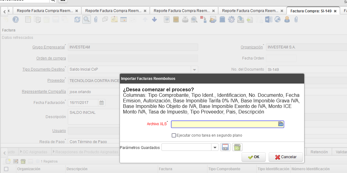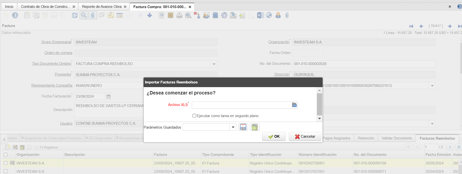openPROCESO Y REPORTE IMPORTAR FACTURAS REEMBOLSOS