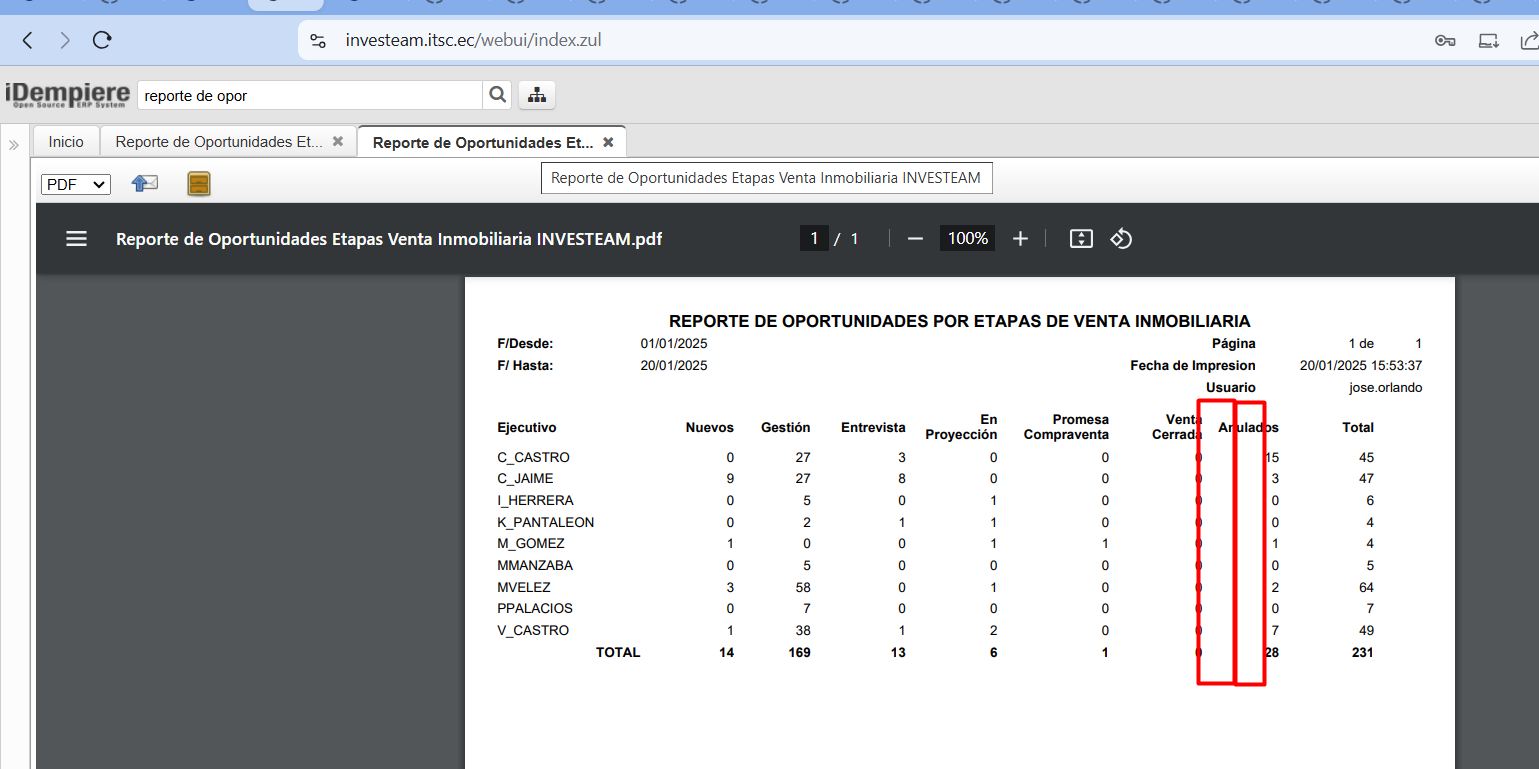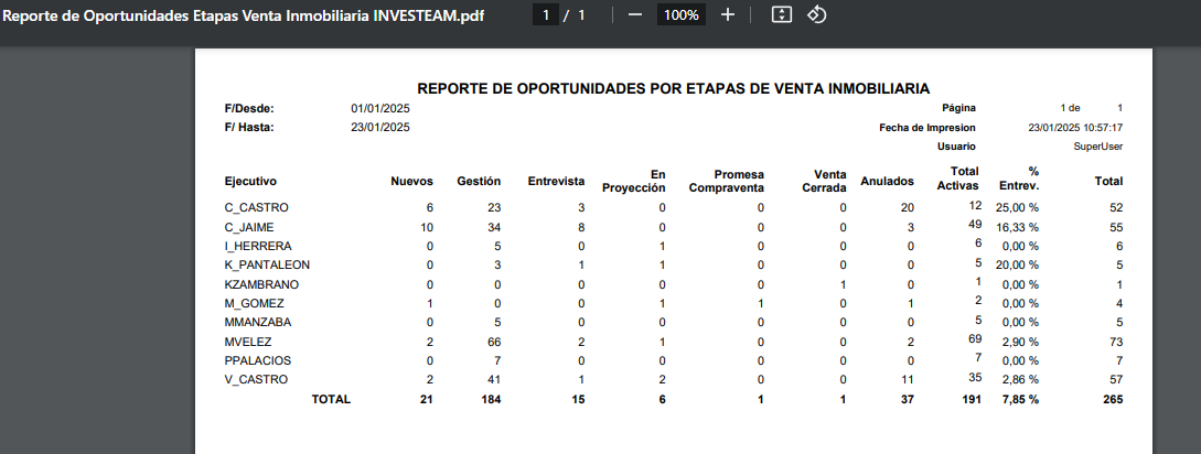 openREPORTE DE OPORTUNIDADES POR ETAPAS DE VENTA INMOBILIARIA