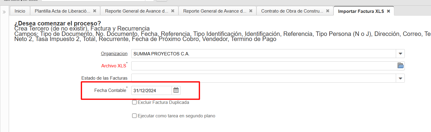 si no se pone, es la misma fecha que viene en excel, de la transaccion