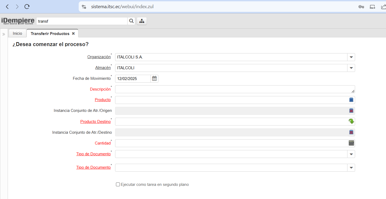 opennuevo proceso Transferir Producto Entre Contratos
