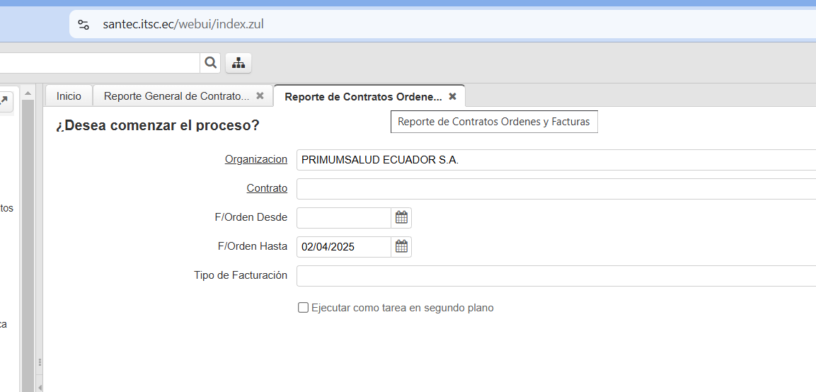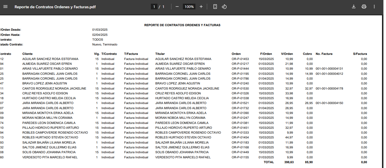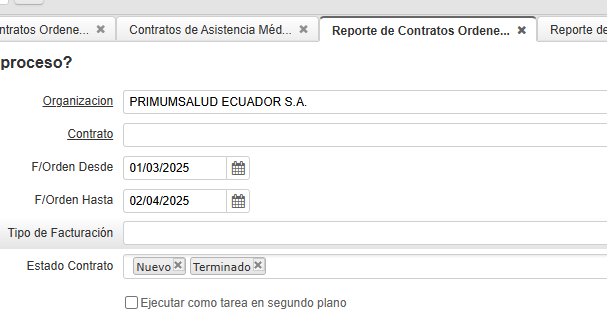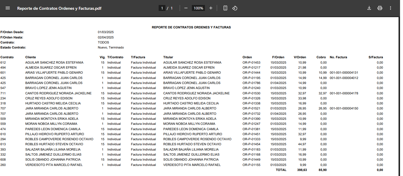 Reporte de Contratos de Asistencia Ordenes y Facturas