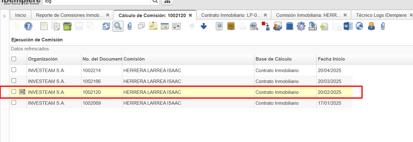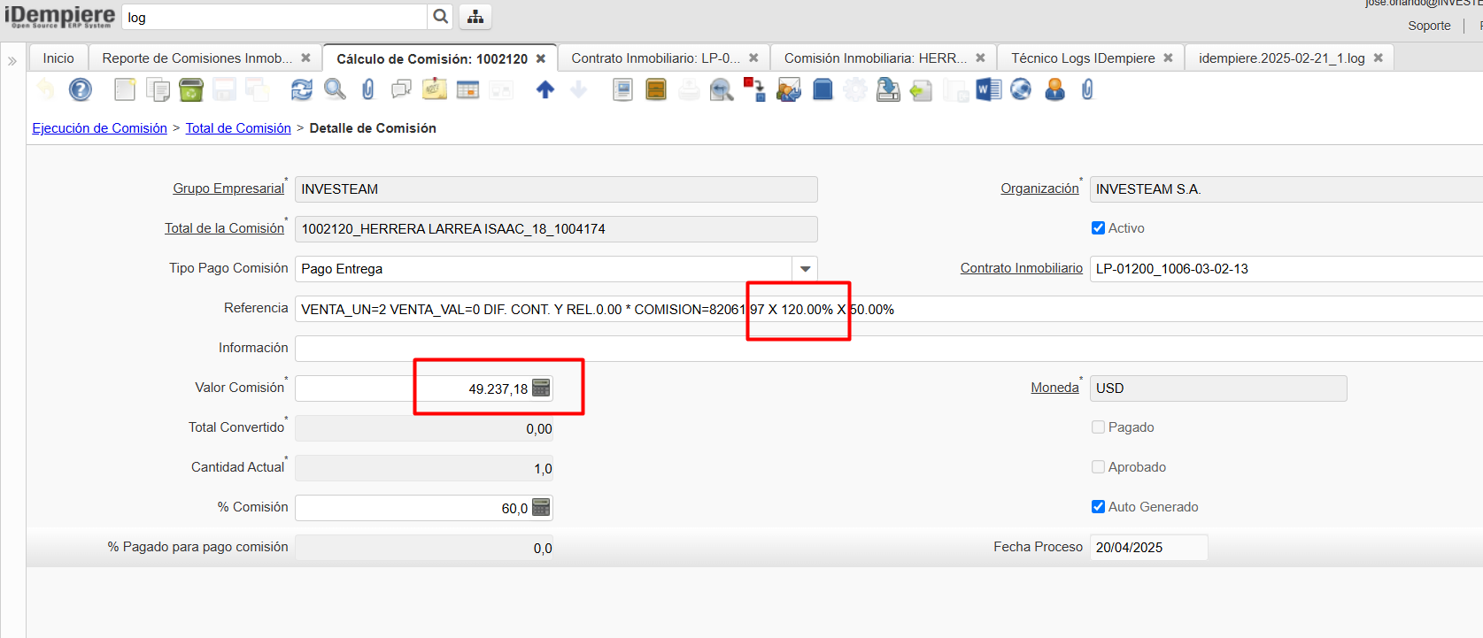 opencalculo de comision, tipo PE, fecha 21 feb 2025
