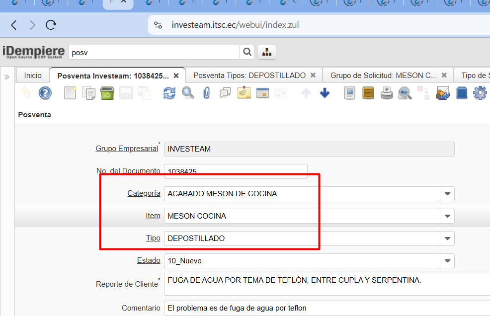 openReporte Configuración Posventa