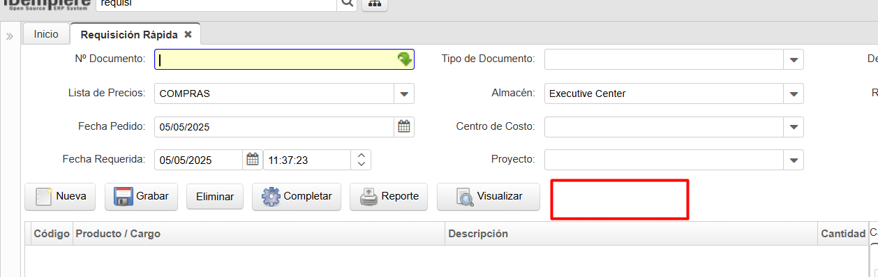 colocar boton excel para importar productos a requisicion, el mismo formato de inventario fisico