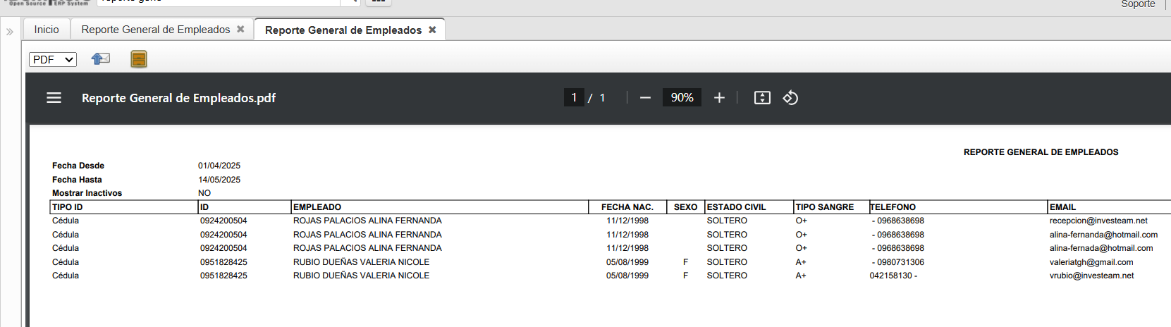 openreporte de empleado repite, porque hay 3 ad user. Debe filtrar por en nomina en ad user