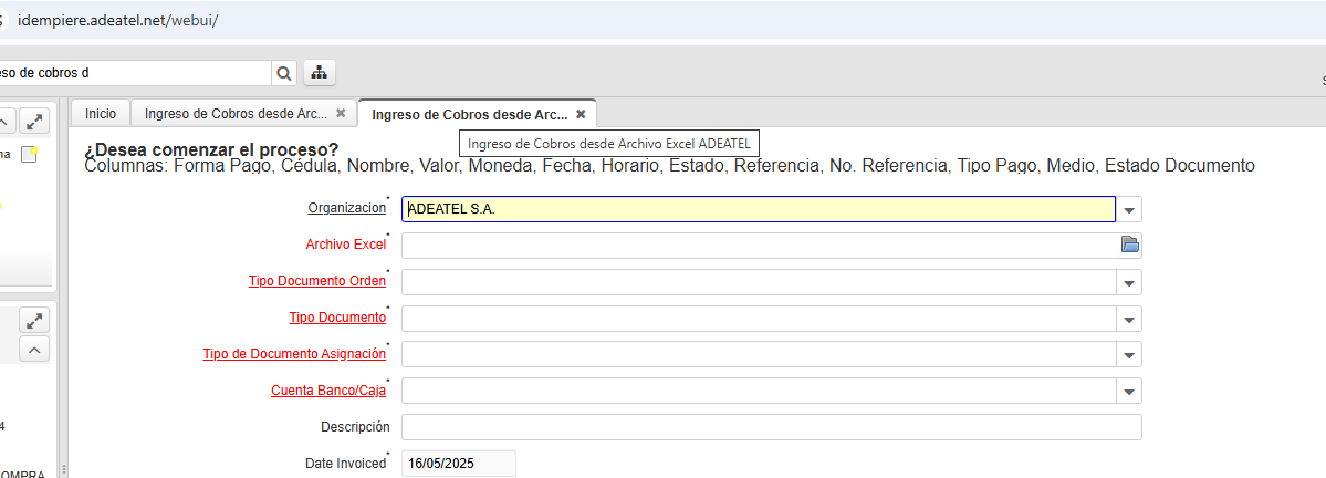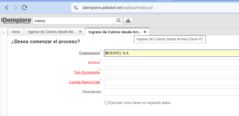 opendocumentar proceso de imp cobros