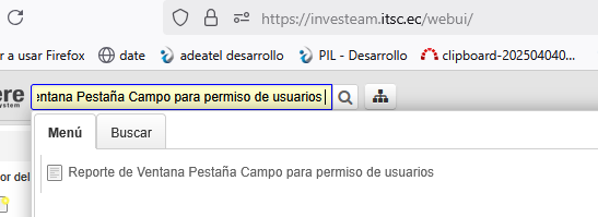 openreporte exp a excel: Reporte de Ventana Pestaña Campo para permiso de usuarios