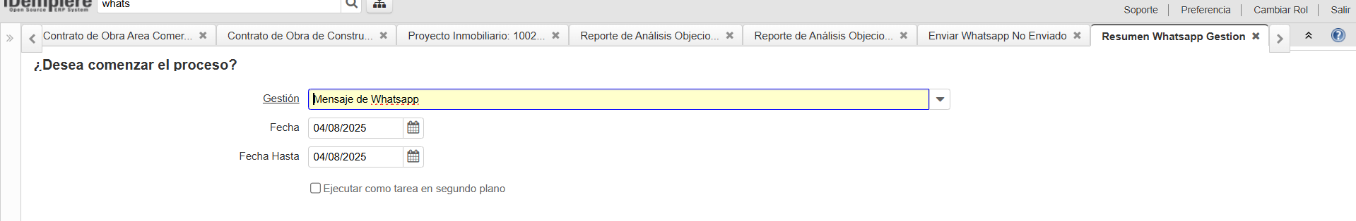 openproceso para enviar tareas de procesos vencidas o atrasadas por whatsapp al ejecutivo (salesrep) que tenga una red social a su nombre
