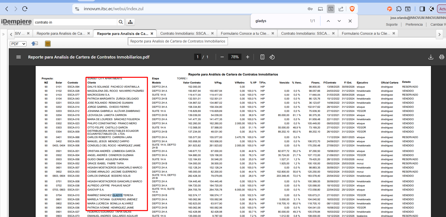 openrevisar reporte de analisis de contratos, columna nombre de cliente, de donde sale