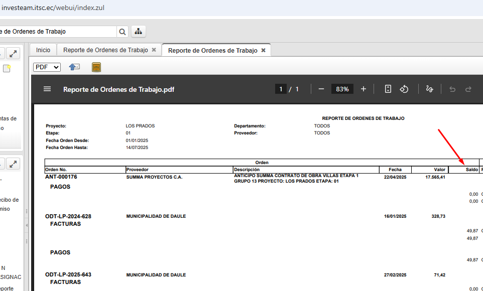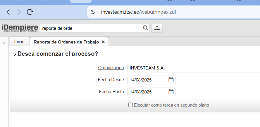 openreporte de orden de trabajo