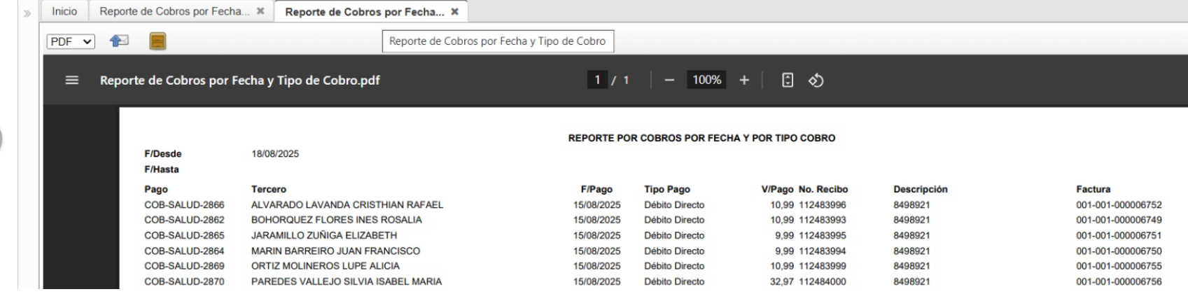 openquitar pagineo de reporte de cobros por fecha, actualizar titulo, esta mal escrito