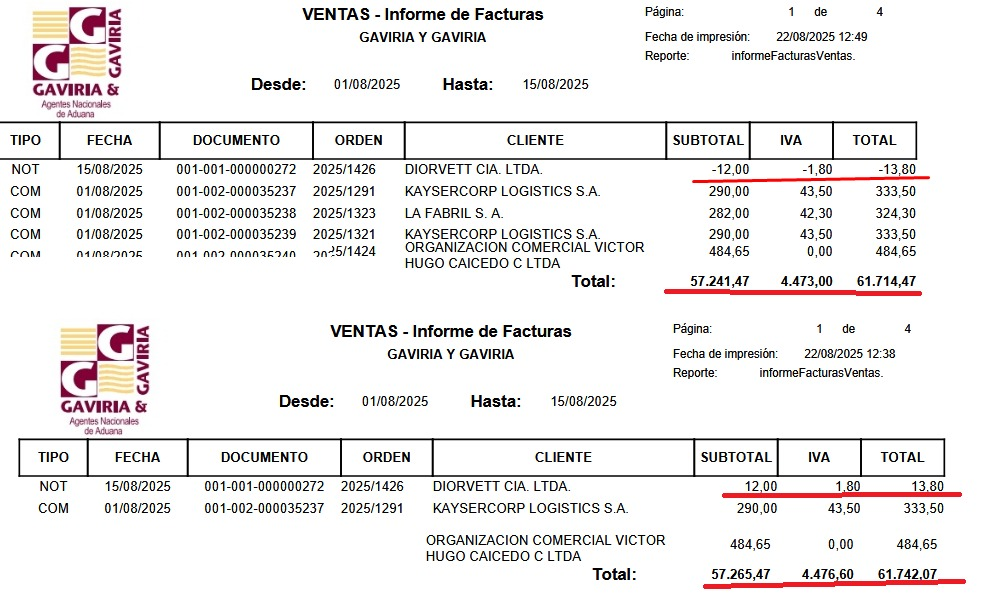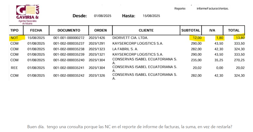 openinforme de factura venta, ver por que la NC sale con otro signo
