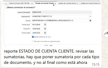 openReporte Estado de Cuenta Cliente y Exportar - agregar sumatorias a grupos Tipo Documento