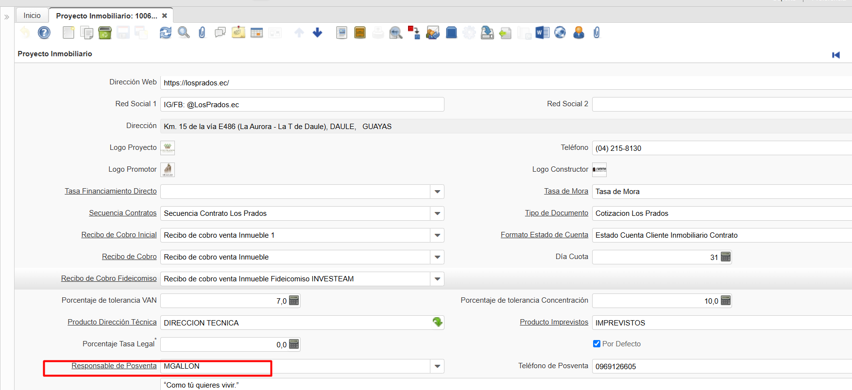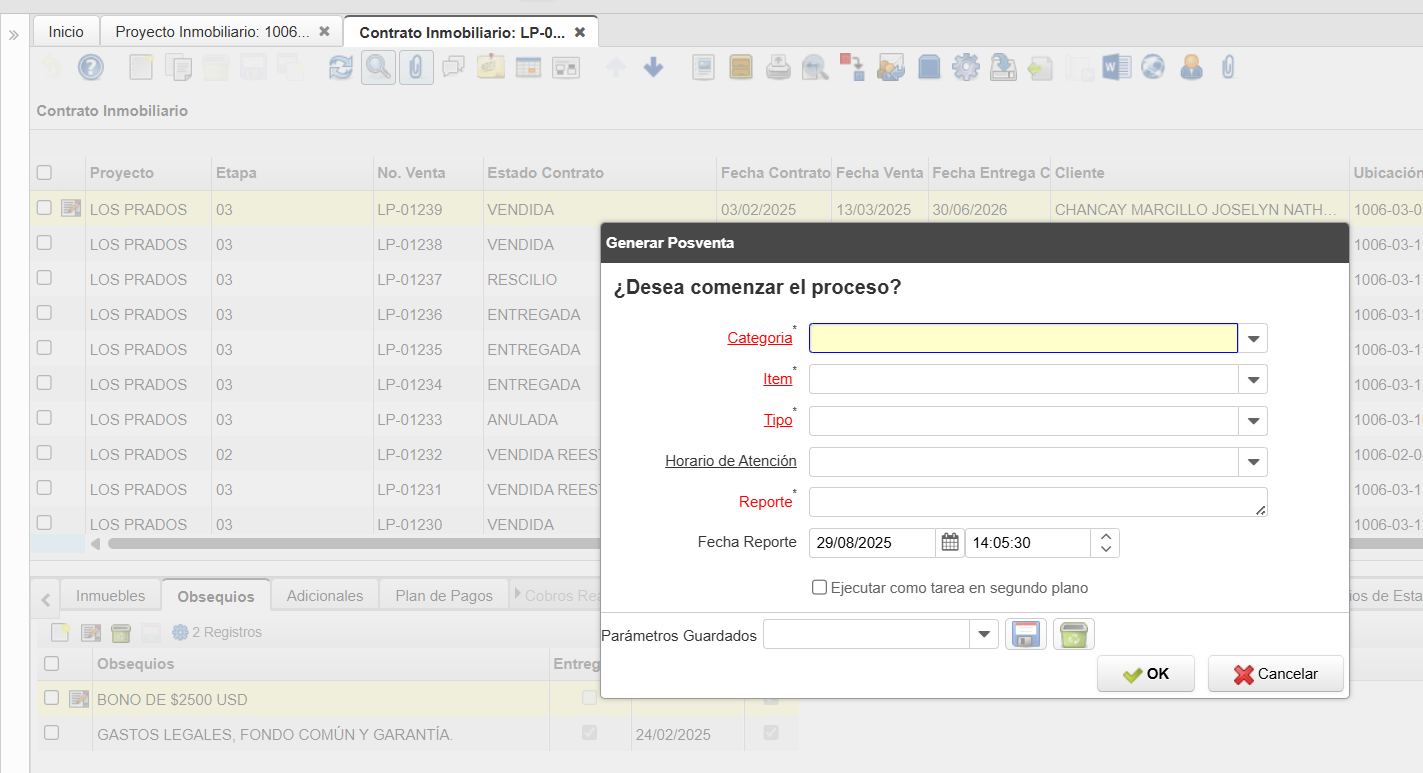 el proceso generar posventa, de ventana contrato inmobiliario, debe tener la misma logica