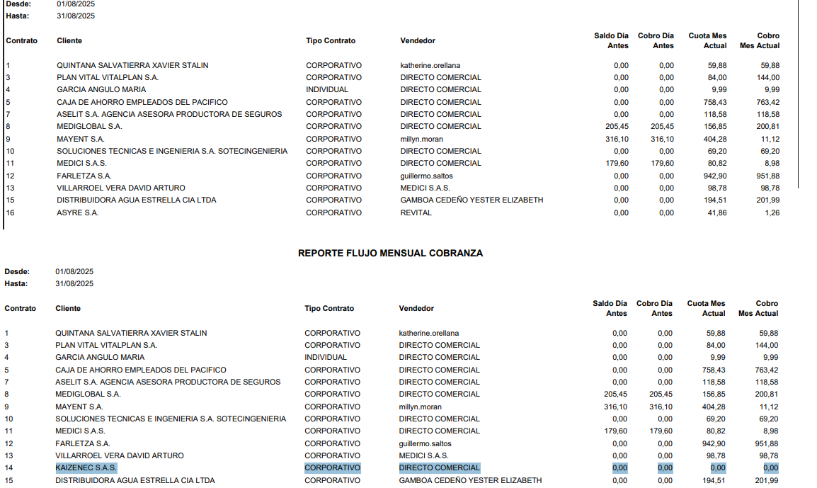 contrato 14 ya sale , ya no va condicion de recurrencias activas