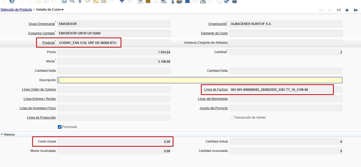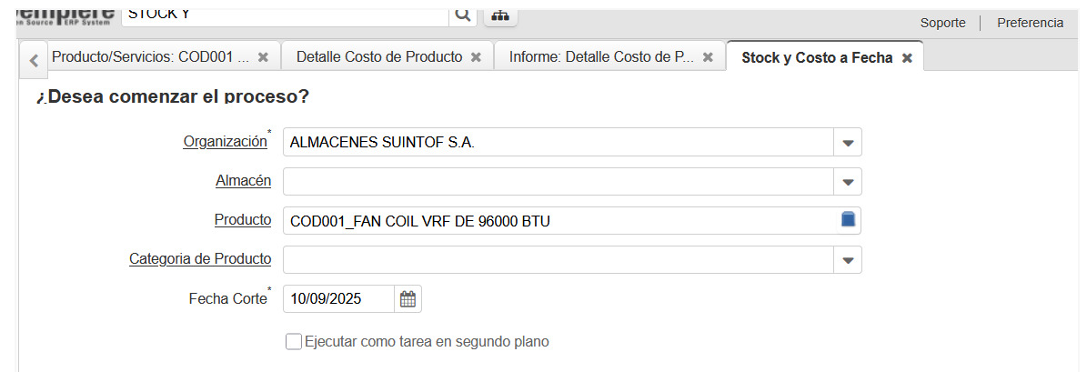 Reporte Stock a Fecha - verificar columnas costo porque sale cero en un producto especifico