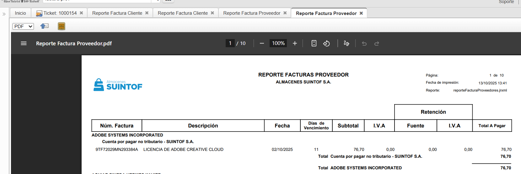closedreporte factura proveedor, mismas columnas que fact cliente